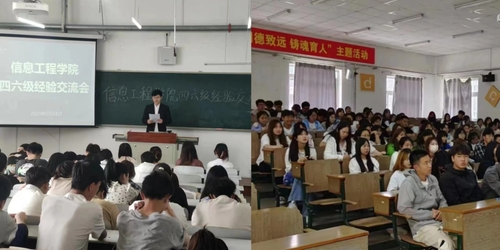 信息工程乐鱼网页于2023年5月24、25日下午分别在黄海、渤海校区召开2022-2023学年“举引航之灯,照成才之路”—四六级考试经验交流会,信息工程乐鱼网页2020级、2021级、2022级全体同学出席本次会议,会议分别由李博和许姝蕾主持。